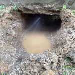 こんにちは カスケホームの宮地です。段々と秋らしくなってきました。稲穂も金色になり大好きな栗も実ってきました。今回は、A様邸の漏水施工をご紹介致します。A様が家の裏手に最近湿っている箇所があり気になって掘り返してみると漏水が見つかりました。連絡を受けて行ってみますと裏手の勝手口下 土間コン下からの漏水でした。先ずは土間コンをハツリ漏水箇所を特定し早速修理致しました。