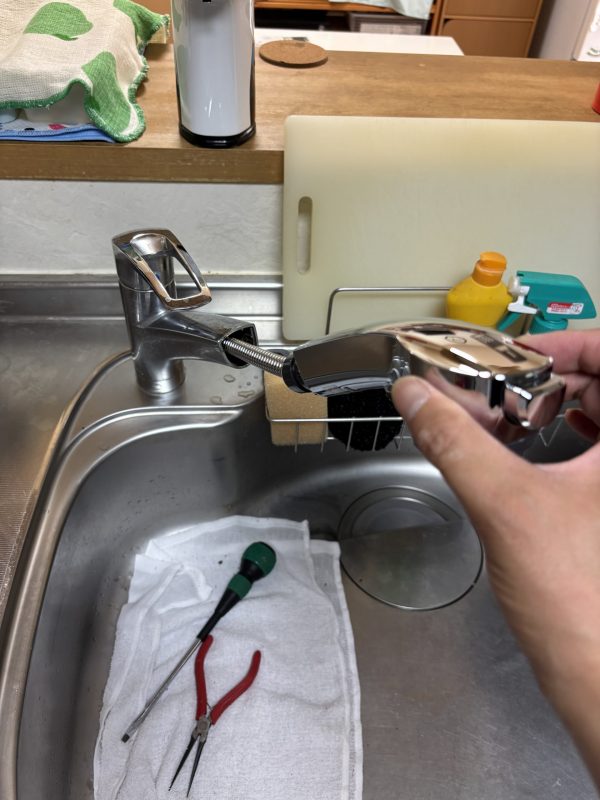 水を使うと、シャワーホースの部分から水が出ていました。