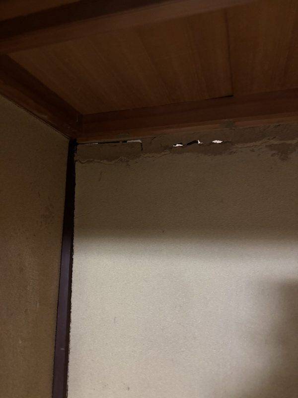 1発目は、和室壁がずれ落ち、隙間が空いている事例です。