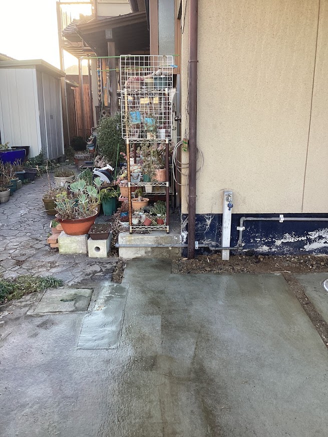 「水道局から漏水の指摘があった」とのご相談を受け、現地調査に伺いました。 現場を確認すると、外水栓(外の蛇口)のあたりから「シューッ」という水漏れ特有の音が…。